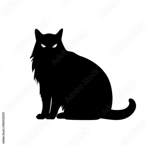 Black Cat Silhouette with Eyes Staring. Halloween, mystery-themed content, pet store, animal-themed products, cat care, nature blog, illustration use.