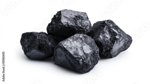 Black coal pieces arranged on a clean white background showcasing texture and detail for industrial and energy-related themes