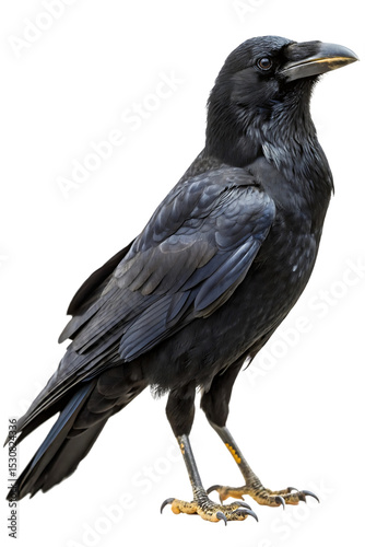 crow, bird, black, nature, wildlife, animal, feathered, isolated, white background, raven, intelligent, wild, avian, common, species, closeup, detailed, feather, eye, beak, foot, ecosystem, environment, stark, mysterious, powerful, dark, freedom, creature, silhouette, communication, smart