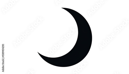 Black crescent moon on white background.