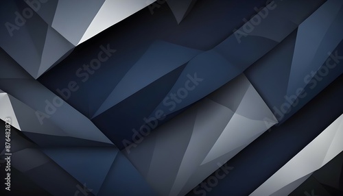 Black dark navy blue silver abstract pattern background. Geometric shape. Line triangle angle fold polygon diamond 3D. Color gradient ombre. Rough grain noise. Light shadow. Matte shimmer. Minimum.