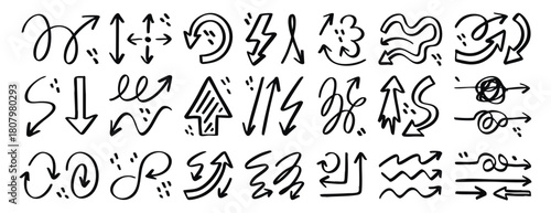 arrow, pointer, direction, doodle, drawn, black, vector, sketchy, minimalist, shape, icon, isolated, straight, curved, twisted, hand-drawn, signs, collection, design, graphic, symbol, marker, monochrome, white background, infographic, calligraphy, simple, various, set, illustration, element, line, logotype, outline, rough, trendy, cartoon, artwork, web, decorative, stylish, stripes, decor, concept, object, abstract, branding, vignetting