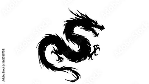 dragon, tattoo, vector, silhouette, illustration, symbol, animal, lion, design, china, heraldic, monster, art, tribal, black, mediaeval, decoration, fantasy, japanese, heraldry, traditional, ornament, ancient, culture, asia