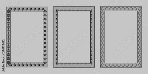 Black Elegant Vintage Lace A4 Frames. Isolated Vector Illustration