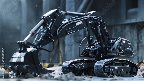 shoveling, black, machine, construction, urban, ruin, concrete, industrial, heavy, machinery, metal, track, arm, bucket, destruction, debris, abandoned, future, rugged, powerful, gritty, dark, grey, steel, dust, shadow, grit, rough, stark, desolate, lonely, empty, grim, cold, hostile, massive, giant