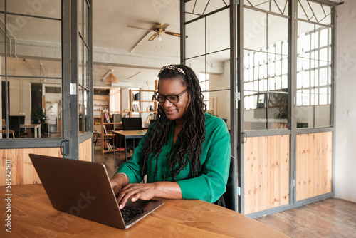 braid, browsing, business, businesswoman, tied-up, computer, confident, copy space, daylight, desk, device, display, electronic, elegant, entrepreneur, executive, freelance, goggles, indoor, interior design, job, laptop, lifestyle, living room, modern, monitor, occupation, office, business building, online, positive, profession, room, screen, sitting, small business, smile, table, technology, telework, typing, woman, work, working, workplace, workspace