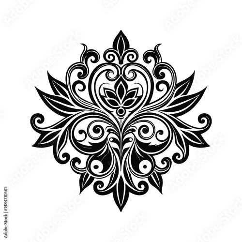 Black floral ornament vector illustration isolated on white background