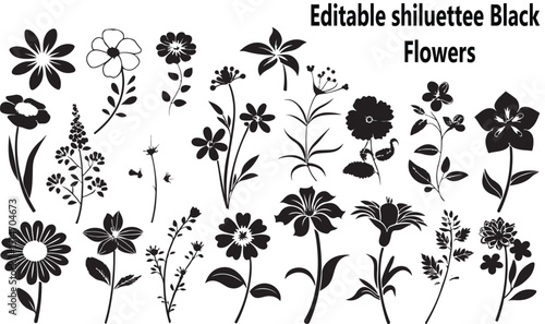 Black Flower Silhouettes | Vector Floral Icons for Pattern, Tattoo, Logo & Design