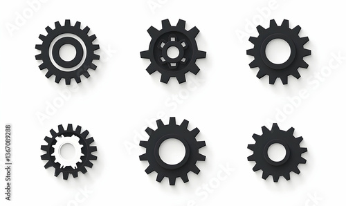 Black Gear Vector Collection Featuring Six Unique Gear Icons