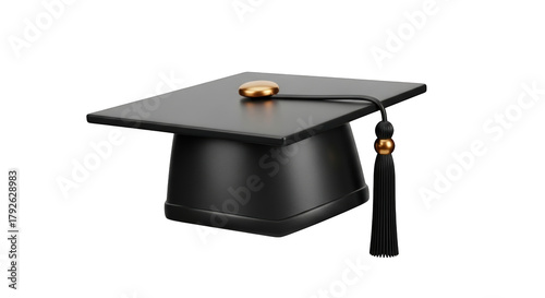 Black graduation cap with gold tassel and tassel button academic education