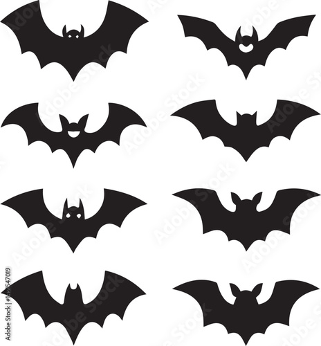 black halloween bat set silhouette vector, halloween bat set clipart vector