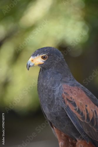 black, hawk, view, side, blurred, background, bird, animal, beak, predator, eye, avian, feather