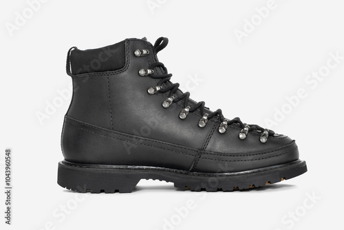 Black leather boots isolated on white background. Fashionable and durable footwear for men and women. Ideal for casual and outdoor wear in autumn and winter