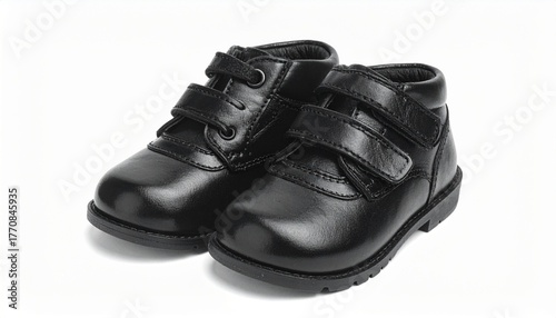 Black Leather Children’s Dress Shoes with Lace-Up Design – Formal Footwear on White Background