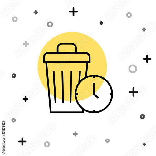 Black line Waste of time icon isolated on white background. Trash can. Garbage bin sign. Recycle basket icon. Office trash icon. Random dynamic shapes. Vector