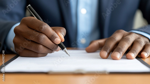 contract, signing, agreements, commitment, professionalism, business, document, closeup, hand, black man, office, legal, negotiation, partnership, paperwork, formal, professional, hand gesture, executive, official