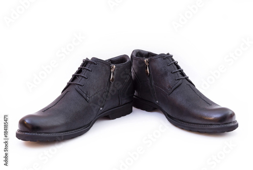 Black men's shoes. Pair of black leather men's shoes isolated on white background