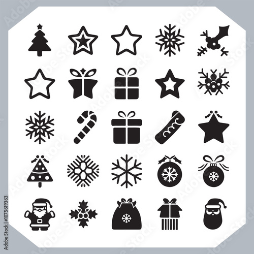Black Merry Christmas day icon silhouette, Christmas Bundle icon set. Christmas icons collection silhouettes in white background