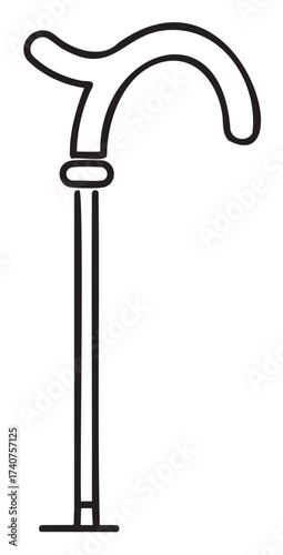 cane, walking, handle, black, curved, stick, support, elderly, aid, mobility, design, simple, classic, tool, line, vignetting, health care, disability, age, assistance, balance, equipment, help, outline, minimalist, grip, rehabilitation, orthopedics, senior, therapy, comfort