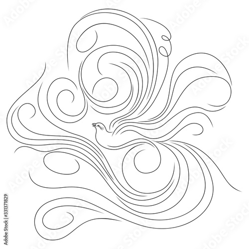 bird, silhouette, illustration, logotype, wing, tail, wavy, line, flying, fly, background, decoration, isolated, flight, floral, abstract, animal, luxury, cartoon, outline, decor, style, idea, nature, design, drawn, cute, graphic, summer, feather, character, creature, stylised, black, white, drawing, art, product, fashioned, plant, swirl, pattern, victorian, creative, freedom, vintage, garnish, embellishment, vector, long