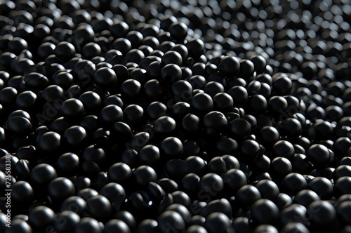 Black plastic pellets factory recycling process. Synthetic granular polymeric dark colored particles. Generate ai