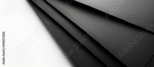 Black sheets of paper set against a blank white background providing ample copy space image