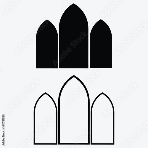 architectural element, black-and-white, symmetric, gothic style, window frame, design element, religious building, silhouette, outline, black, white, grey background