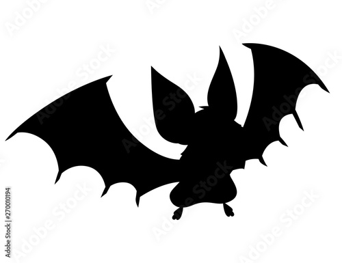 Black silhouette. Cartoon bat. Cute vampire bat, flying mammal. Flat vector illustration isolated on white background. Cartoon character design. Bat flapping wing, waving hand