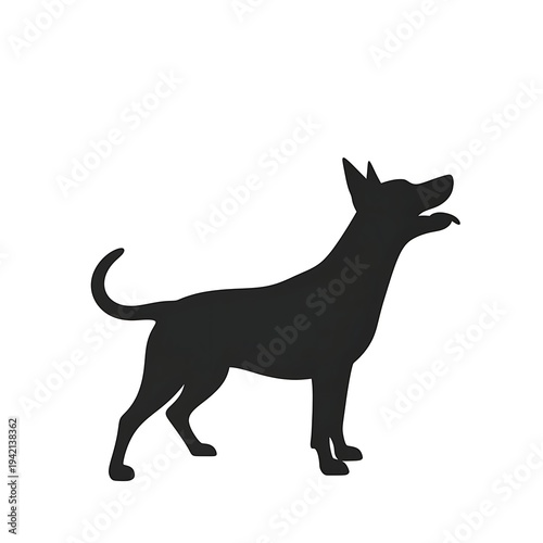 dog, silhouette, black, animal, pet, barking, standing, isolated, white, background