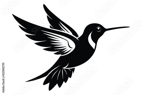 Black Silhouette of a Hummingbird in Flight with Intricate Wing Detail