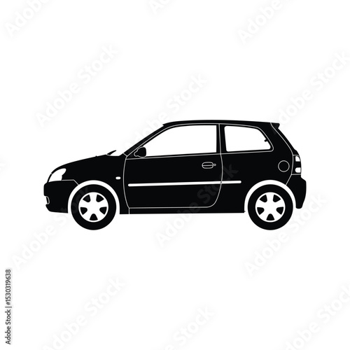 car, hatchback, silhouette, black, white, background, vehicle, automobile, compact, small, side, view, profile, icon, illustration, graphic, design, element, isolated, clip art, vector, transportation, auto, modern, city, urban, travel, road, drive, wheel, tire, door, window, roof, body, engine, fuel, gas, parking, speed, stylish