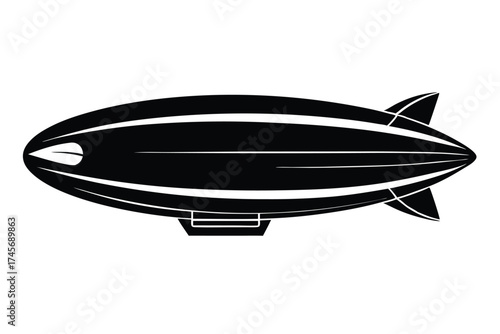 Black Silhouette of Classic Airship, Zeppelin Style with Gondola and Tail Fins Details