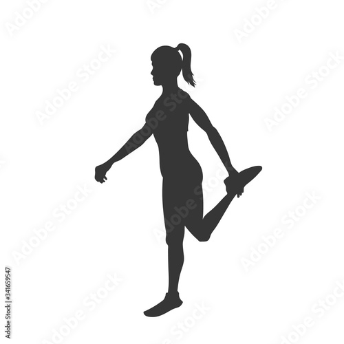 Black silhouette of stretching girl. Gymnastic exercise. Outdoor fitness. Young active woman. Isolated workout image