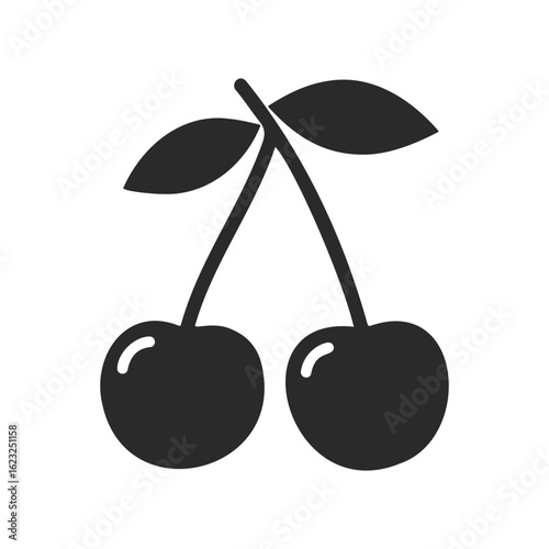 cherry, silhouette, black, leaf, stem, fruit, simple, minimalist, design, icon, vector, illustration, outline, graphic, cartoon, food, healthy, fresh, sweet, nature, botanical, organic, ripe, natural, clean, abstract