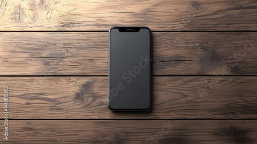 Black Smartphone on Rustic Wooden Surface with Natural Wood Grain Texture for Tech Product Photography
