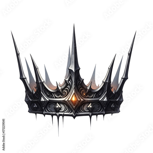 crown, black, metal, spike, sharp, gemstone, orange, jewellery, regal, royals, fantasy, dark, gothic, headwear, headpiece, ornament, decoration, power, authority, majesty, symbol, ancient, mediaeval, mythical, legendary, king, queen, emperor, empress, monarch, ruler, sovereign, throne, kingdom, empire, reign, prestige, glory, dominion, strength, thews, brilliancy, grandeur, opulence, luxury, treasure, artifact, relic, heritage