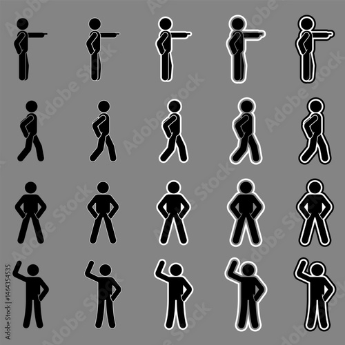 male, man, children, isolated, icon, human, person, girl, pictogram, figure, posture, signs, silhouette, standing, stick, stickman, symbol, cartoon, white, black, woman, design, family, female, illustration, adult, pose, position, boy, set, character, children, racked, vector, basic, style, simple, vignetting, move, shape, gesture, relaxed, activity, guy, background