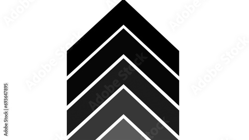 Black swipe up pointing solid arrow icon. Up direction animated arrow on white background