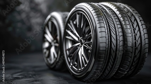 Black Tires and Wheels with Blurred Background