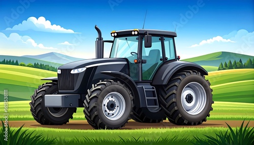 tractor, farm, agriculture, rural, countryside, landscape, machinery, vehicle, engine, field, green, nature, hill, mountain, machine, farming, work, power, equipment, heavy, industry, modern, powerful, technology, utility