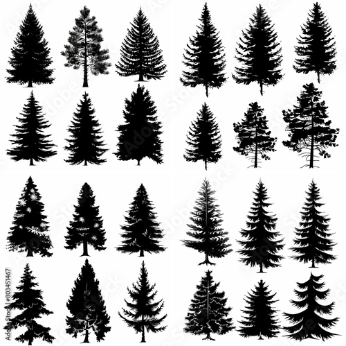 black tree silhouette set pure badge eco outline recreation breath emblem label protection graphic pine trunk woodland