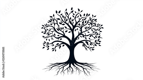 tree, silhouette, root, leaf, nature, growth, stability, black, white, background, environment, ecology, life, plant, botany, organic, natural, forest, timberland, garden, landscape, park, season, spring, summer, autumn, winter, tree branch, trunk, foliage, design, illustration, vector, icon