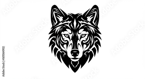 "Black tribal wolf vector head with sharp geometric design"