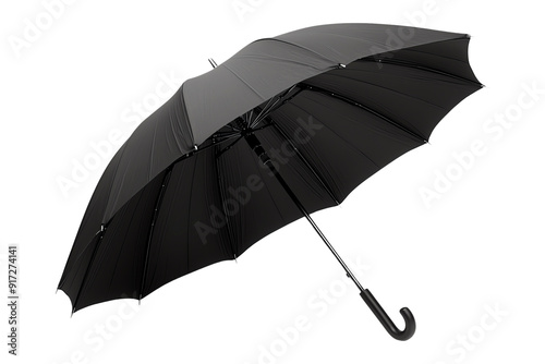 Black umbrella designed for protection against rain and sun, isolated on transparent background.