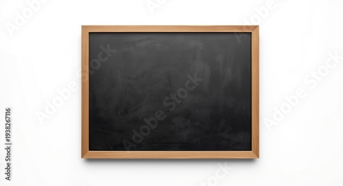 Blackboard framed in wood placed on a plain white backdrop for copy space