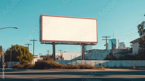 billboard, blank, urban, city landscape, city, building, sky, sunny, clear, day, advertising, modern, architecture, empty, signs, advertisement, presentation, background, design, promotional, marketing, media, communication, message, sunlight, horizon, view, vacant, commercial