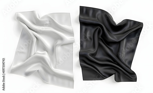 Blank black and white twill silk scarf mockup, top view