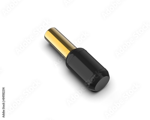 Blank Black nail polish bottle with gold cap ready for your design and branding mockup template isolated on white background, 3d illustration.