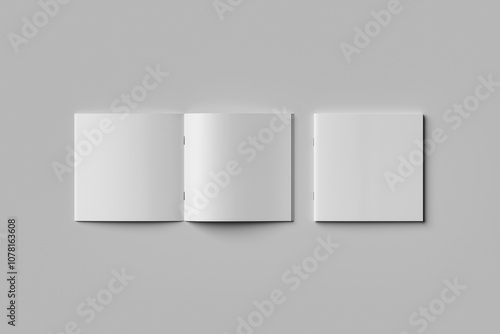 white, paper, blank, page, booklet, empty, cover, square, mag, open, shadow, illustration, realistic, three-dimensional, top