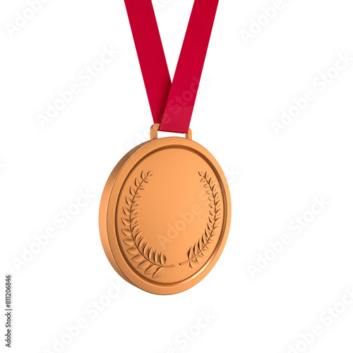 Blank bronze medal with red ribbon on transparent background